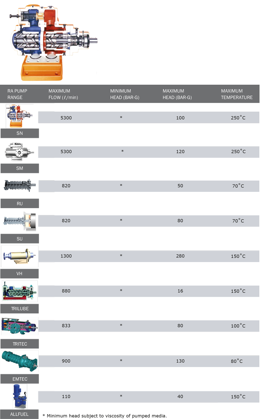 The ALLWEILER three screw pumps are used to pump oils or other lubricating liquids, non-lubricating liquids, or liquids with poor lubricating properties.