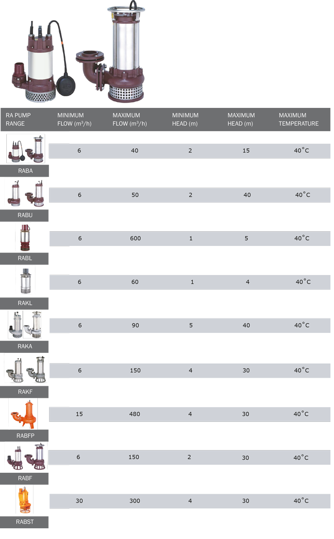 RABST - fully submersible pumps designed to handle all applications especially slurries waste water and mine drainage.